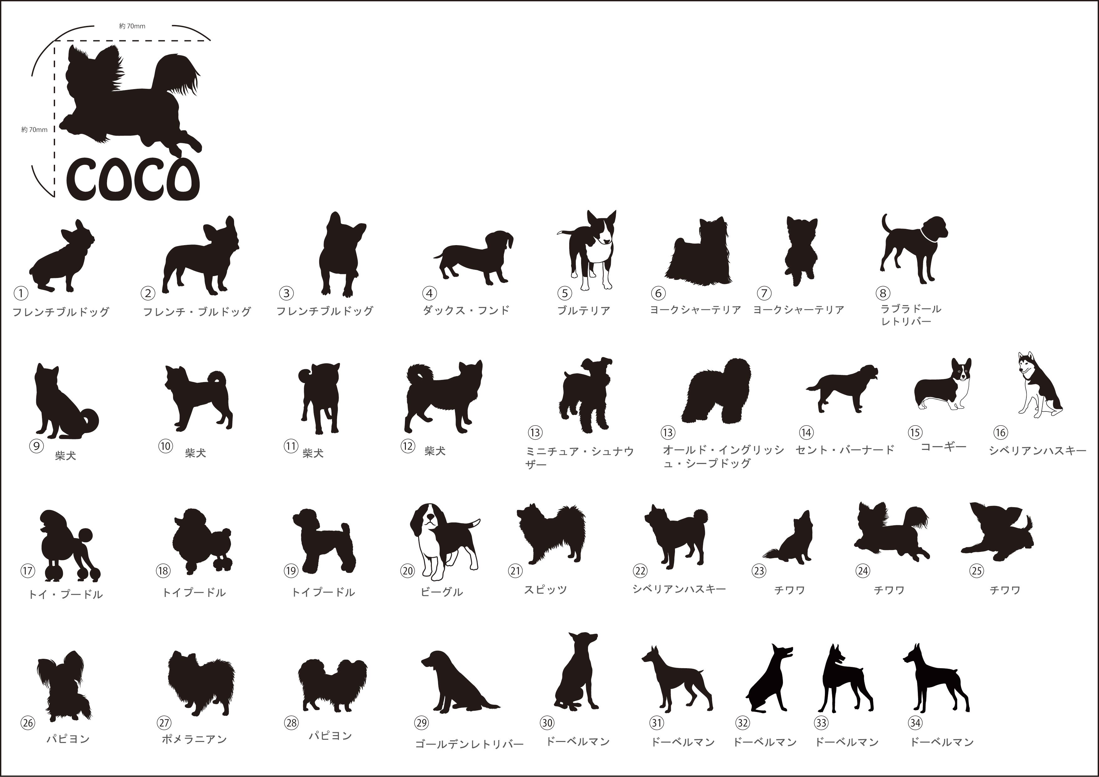 ①犬種・シルエット番号を1枚目の画像から選択いただき番号を入力して下さい。